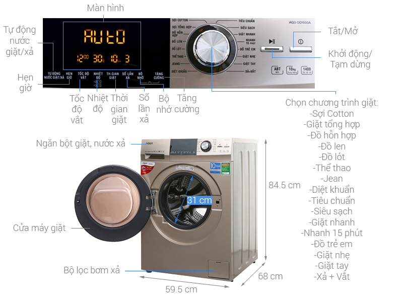 Đa số máy giặt trên thị trường hiện nay khi vận hành sẽ có độ ồn nhất định. Nhưng ở máy giặt Aqua Inverter 10 kg AQD-DD1000A (N2) được thiết kế các lò xo giảm rung lắc bên trong, cố định lồng giặt rất tốt, tạo nên môi trường yên tĩnh, thoải mái cho người dùng.