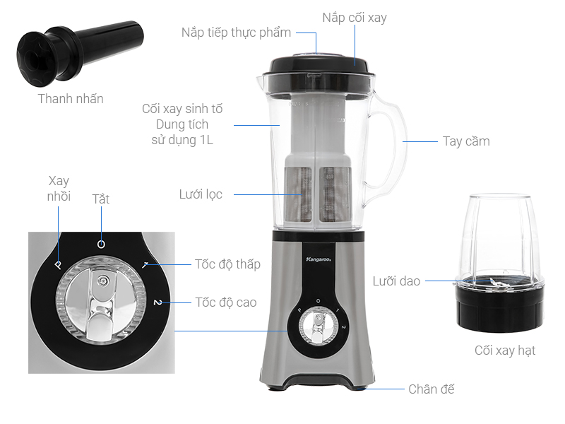 Máy xay đa năng Kangaroo xay hoa quả, rau củ, ngũ cốc, thực phẩm khô với 2 cối xay