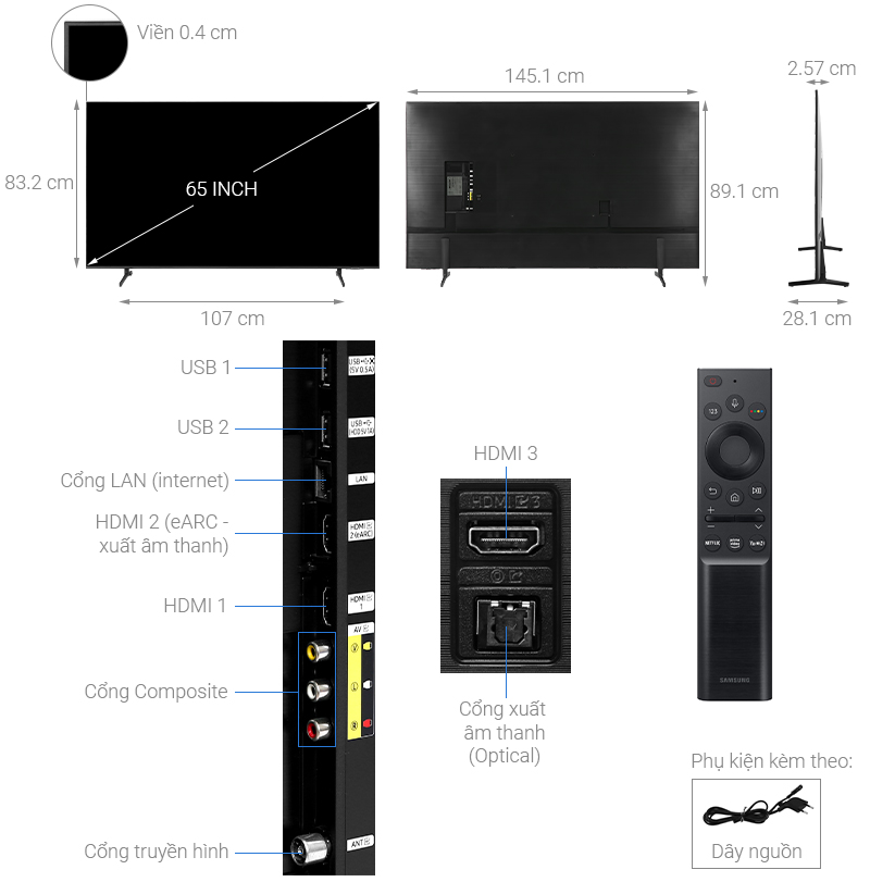 3 cổng HDMI có 1 cổng HDMI eARC (ARC), 1 cổng Composite