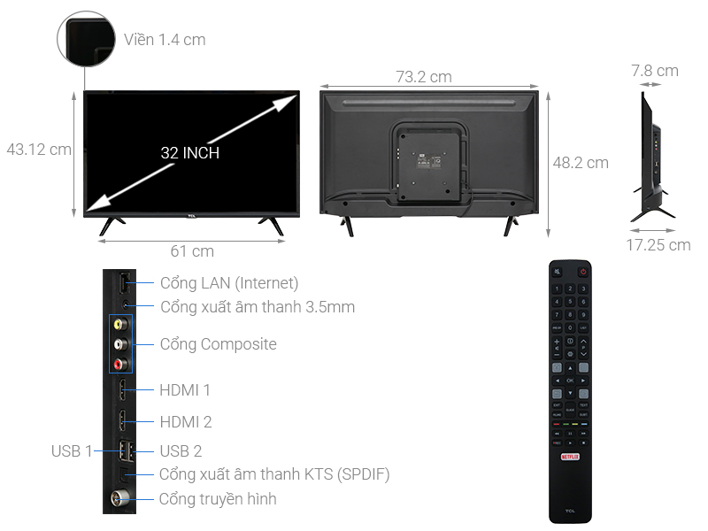 Tivi TCL 32 inch với kích thước nhỏ gọn sẽ dễ dàng bố trí ở các không gian có diện tích nhỏ như: phòng khách nhỏ, phòng ngủ,...